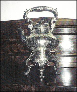 tray and a silver hot water kettle on a stand on this occasion, shown in the